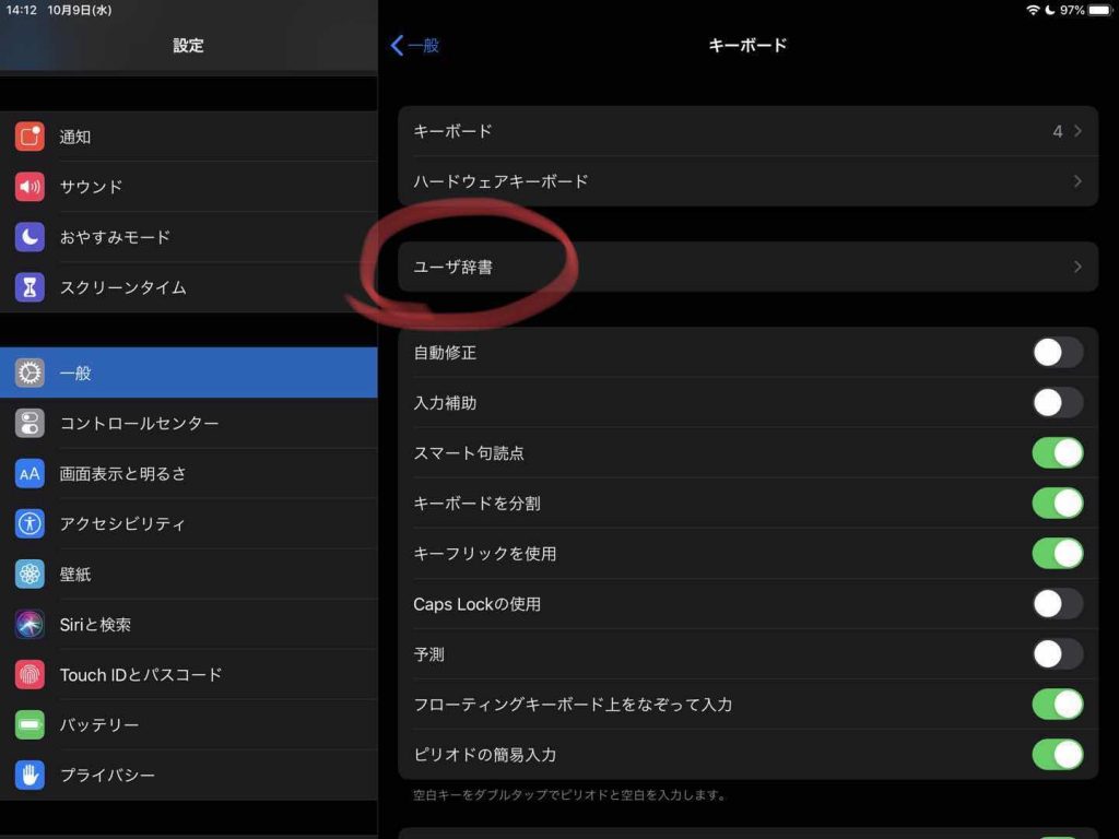 ユーザー辞書をクリック。